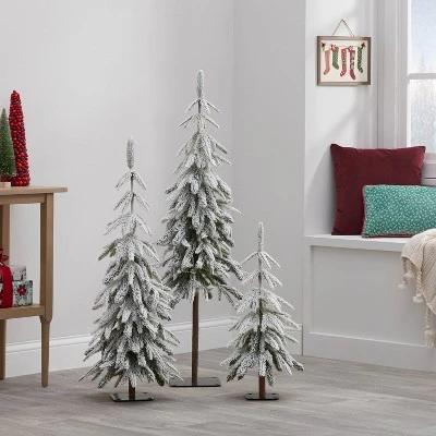 - Unlit downswept flocked Alpine balsam Christmas tree
