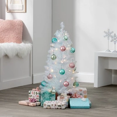 - 3ft pre-lit iridescent tinsel artificial Christmas tree
