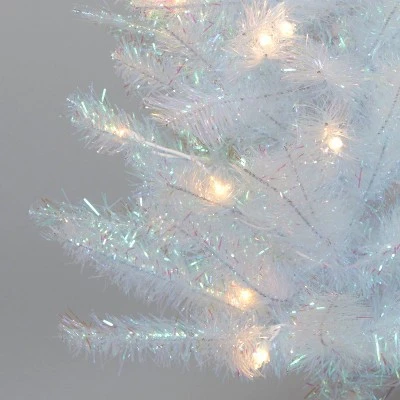 Give your holiday decor a vintage vibe with the Pre-lit Iridescent Tinsel Artificial Christmas Tree with Clear Lights from Wondershopâ„¢. This glam artificial Christmas tree has an iridescent tinsel design that’s beautiful as is or with colorful ball ornaments, and at a height of just three feet, it’s ideal for placement in any room, even smaller spaces. Plus, the tree comes pre-lit with clear lights and includes a white tree stand for easy display.
