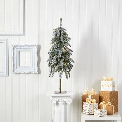 Set up the ultimate Christmas scene even in a limited space environment with the help of this 3.5ft. Flocked Washington Alpine Christmas Tree with 50 White Warm LED lights and 168 Bendable Branches by Nearly Natural. Completely maintenance-free, this winter-inspired artificial Christmas tree boasts a slim and slender silhouette made up of 168 easy-to-bend branches to showcase all your favorite holiday ornaments and comes beautifully flocked in a winter coating of faux snow to evoke the impression of freshly fallen snow. Arriving pre-strung with 50 LED lights to eliminate unsightly tangles and carefully stabilized on an extended faux wooden pole and metal stand, this snowy 3.5’ artificial Christmas tree will undoubtedly transform your holiday decor, year after year.