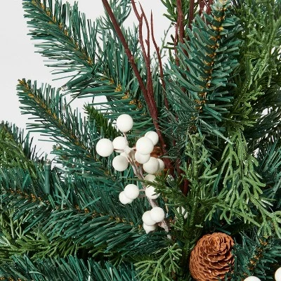 Add holiday panache to any pot with this Pre-lit Mixed Greenery Artificial Christmas Planter Insert with Warm White LED Lights from Wondershopâ„¢. Showcasing mixed greenery, pinecones, white berries and warm white LED lights, this pre-lit artificial planter insert is ideal for putting in a festive pot and is powered by batteries, so placement is easy. Simply place in an indoor or sheltered outdoor space for a beautiful accent to your holiday decor.