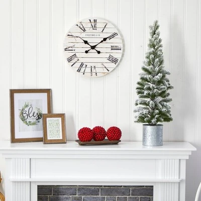 Create the ultimate winter wonderland scene in your home or office with the help of this 3ft. Flocked Christmas Artificial Pine Tree in Tin Planter by Nearly Natural! Completely maintenance-free, this winter-inspired fake Christmas tree boasts an array of soft looking foliage, all beautifully flocked with a snow-like effect throughout its bendable branches that look incredibly lifelike. Extending 3’ wide from a tin metal planter, this versatile flocked artificial Christmas tree will not only make holiday decorating a breeze but ensure your home is always looking picture-perfect throughout the holiday season.