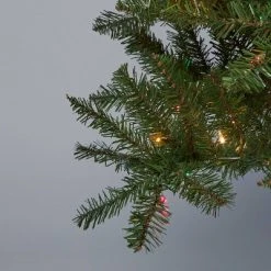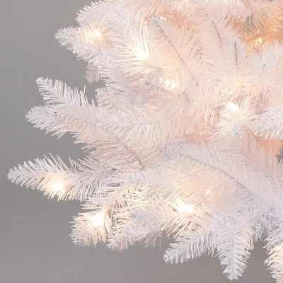 - 4ft tall faux white Alberta pine tree with clear incandescent lights