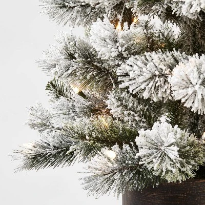 Create a cozy Christmas atmosphere in your living room, den or great room with the 5-Foot Pre-Lit Artificial Christmas Tree Potted Flocked Slim Virginia Pine from Wondershop™. This artificial Christmas tree is realistically styled to look like a beautiful Virginia pine, and it comes seated in a distressed bronze plastic pail for a rustic finishing touch. With a slim shape and medium height, this tree is perfect for a wide variety of spaces. Plus, it comes pre-lit with clear lights for easy decorating.