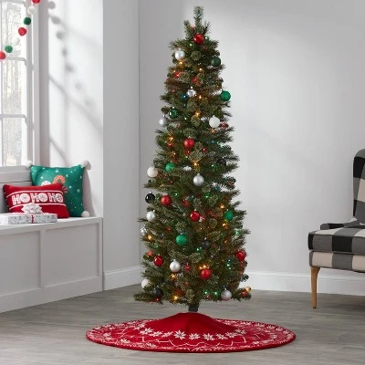 Bring a traditional Christmas look and feel into your home that’s sure to capture the attention of your guests with this Pre-Lit Virginia Pine Artificial Christmas Tree from Wondershopâ„¢. This pre-lit artificial Virginia pine tree features natural-looking pull-down branches to add cheer and fuss-free upkeep to your home, and it includes a metal base for stable floor display. Plus, it arrives strung with 210 multicolored constant bulbs that bring bright ambiance to your living space. Simply plug in to any wall socket and enjoy the spirit of the season.