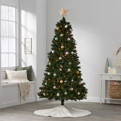 Complete a traditional Christmas scene with this Pre-lit Douglas Fir Artificial Christmas Tree LED Dual Color Lights from Wondershopâ„¢. This seven-foot-tall faux Douglas fir Christmas tree lends a realistic, natural look to your seasonal decor. It comes pre-lit with 300 multicolored LED bulbs with a color-changing effect for fun movement and playful flair. The artificial tree offers convenient, maintenance-free construction, and it includes a metal base for easy and stable placement on the ground. Simply add ornaments, garlands, ribbons and a tree skirt to create a classic Christmas look you’ll enjoy year after year.