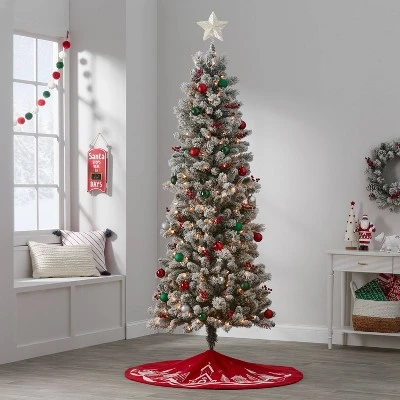 - 7ft pre-lit slim flocked artificial Virginia pine Christmas tree