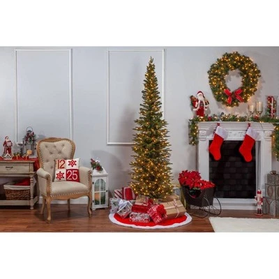 Celebrate holiday season in style with family and friends. These rustic 7.5ft Sterling Tree Company Natural Cut Slim Lincoln Pine Artificial Christmas Tree is perfect for your holiday decor. Decorated with a light flocking, this tree is sure to impress. Display plain or add ornaments for a bit of extra flair. Pepping up for Christmas has never been this fun!