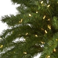 Set up a traditional Christmas scene even in a limited space environment with the help of this 7ft. Wyoming Alpine Artificial Christmas Tree with 200 Clear (Multifunction) LED Lights and Pine Cones on Natural Trunk by Nearly Natural. Completely maintenance-free, this natural looking artificial Christmas tree boasts a slim and slender silhouette made up of easy-to-bend branches to showcase all your favorite holiday ornaments, handsomely accented throughout with faux pinecones that look incredibly lifelike. Arriving pre-strung with 200 clear (multifunction) LED lights to eliminate unsightly tangles and carefully stabilized on a natural trunk and metal stand, this handsome 7’ artificial Christmas tree will undoubtedly transform your holiday decor, year after year.