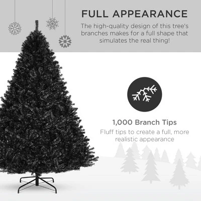Decorate for the holidays with a sophisticated black tree that makes the perfect blank canvas for multiple occasions. It’s perfect for Halloween or a unique look for the Christmas season. This tree features a simple 3 step assembly: step 1 connect the base to part A, step 2 attach the remaining sections, step 3 fluff the tree for 30-45 mins for great shape! The hinged branches and foldable stand make setup and tear-down quick and easy while storage is a breeze. Add to all this the versatility of its color and you have a tree no just for the Christmas season, but Halloween as well!