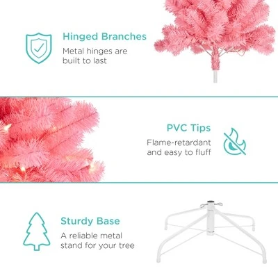 Make the holiday season bright and wonderful! This decorative tree helps provide a classic Christmas feel for your holiday season! The high-quality design of this tree’s branches makes for a full shape that simulates the real thing! A series of 947 branch tips & 350 lights help complete the scene. This product features hinged branches, metal hinges are built to last. The PVC is flame-retardant and easy to fluff, while the sturdy base provides a reliable metal stand for your tree. The assembly comes together with three easy steps: Step 1 Connect the base to Part A, step 2 Attach the remaining sections, and step 3 Fluff tree for 30-45 mins for great shape. No matter your holiday decor, subtly colored wires combined with strong branches for decorations complete the spectacle in any setting!