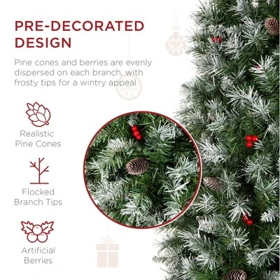- PRE-DECORATED DESIGN: Made with pine cones and artificial berries evenly dispersed throughout partially flocked branches to create a natural look that brings a feel of the outdoors into your space