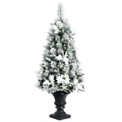 - Snow Flocked Branch Tips: This Christmas entrance tree consists of 223 fine crafted branch tips that look full and dense in appearance. Flocked with thick snow powder, these leafy branch tips make a strong feeling of wintry festival. Moreover, there are several holy white flowers and white berries trimmed on the tree to make it more attractive.