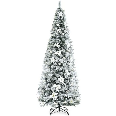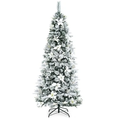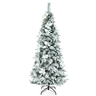 Our Snow flocked artificial Christmas pencil tree will add a warm, festival feeling to any setting. And pre-decorated with pure white berries and lily-white flowers, the tree is suitable for the Christmas season and looks beaming with charm. Supported by a sturdy foldable metal stand, this Christmas tree will keep upright and endure many holidays. And there is no need to worry about installation and storage for it is fairly easy for anyone to assemble the Christmas tree thanks to the convenient hinged design. Welcome this classic unlit tree into your home and bring cheer and laughter to you and your family!