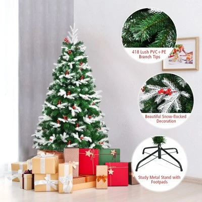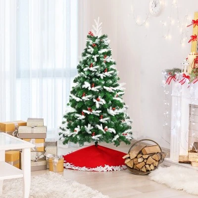 - Spray White PE Tips with Red Pine Cones: The spray white tree top that comes with the sprayed Christmas tree can create a feeling of winterly Christmas. However, 61 bright red berries seem to use their enthusiasm to drive away coldness. The perfect combination of green tips, snow branch tips, and red berries presents a beautiful picture of your home.