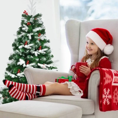 The realistic tree design can give your home a bit of nature’s feel throughout the year and the Xmas tree decorated with red berries is even more attractive! The leaves made of 100% new PE and PVC materials instated of recycled material are non-toxic, odorless, and non-allergic, ensuring safe use for you, your children, and your pets. The metal stand provides high stability and sturdiness, helping the tree to stay straight and upright. The hinged structure facilitates assembly, disassembly, and storage. With fine craftsmanship and vivid appearance, the Christmas tree will accompany you and your family through many happy Christmas!
