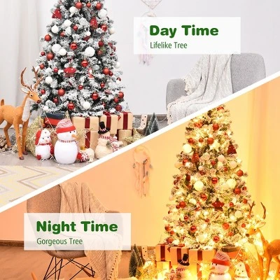 - Selected PVC with Snow Flocked Design: This lush Christmas tree is made of environmental-friendly and non-flammable PVC material, which is harmless and safe to use. Besides, the leaves with realistic flocked snow create a unique winter feeling, making the whole tree leafier and fluffier.