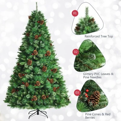 - Vivid & Classic Ornaments: Our artificial Christmas tree is decorated with classic Xmas elements, such as large pine cones and red berries. These cute ornaments bring a fresh feeling of vitality to the tree. Besides, you can hang other ornaments prepared by yourself on it to fully enjoy DIY enjoyment.