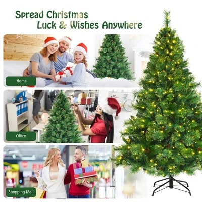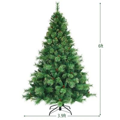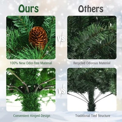 Our pre-lit Christmas tree with outstanding appearance can perfectly match with various decorated places. Lush xmas tree with real pine cones and golden leave tips will attract people’s eyes at sight. 2 leaf shapes of PVC foliage and pine cones show different shades of green. And branch tips that made of 100% new PVC create a full-bodied appearance and verdant color, making the tree glorious and life-like. In addition, pre-strung LED lights with warmth and brightness bring home romantic vibe and festival atmosphere. Thanks to the hinged structure, this xmas tree is easy to assemble and fluff. In a word, this pre-lit Christmas tree is your ideal choice to celebrate the coming Christmas and New Year, which can make you feel happiness and luck.