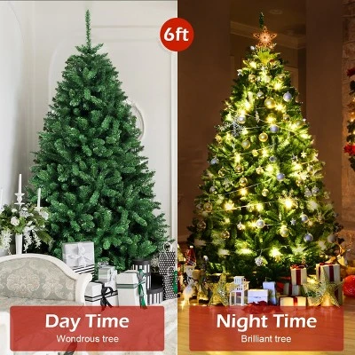 - Simple Style & Realistic Appearance: Crafted with 1355 branch tips, the 6 ft artificial Christmas tree is leafy and will give you a realistic look. Featuring generous and simple style, there are no extra decorations on the tree, offering you plenty of space to hang ornaments. Accordingly, you can decorate it with Christmas stockings, colored balls and lights according to your preference or the style of the room.