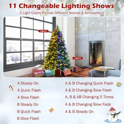 - Provide Charming Lighting Shows: Equipped with 350 bright LED lights, this 2-color changeable Christmas tree brings home romantic vibe & beautiful lighting show. And there are 11 dynamic effects for you to choose, such as steady on, quick flash, slow flash, changing flash and changing fade.