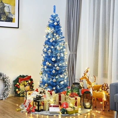 This is our brand new 6ft slim Christmas tree which is designed with 520 branch tips to offer a realistic and lush appearance. Simple Christmas tree allows you to decorate it freely with Christmas stockings, colored balls, lights or other ornaments according to your own preferences. Slim pencil shape design makes the tree take up less space to suitable for any narrow place. Foldable X-shaped iron stand prevents breakage and enhances the balance of the tree, offering stability to keep the wondrous tree standing all year around. Whether for your home, courtyard, or for commercial places like shops, the distinctive silver tinsel tree is the perfect eye-catching decoration to add multiple fun and festive holiday fullness!