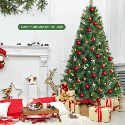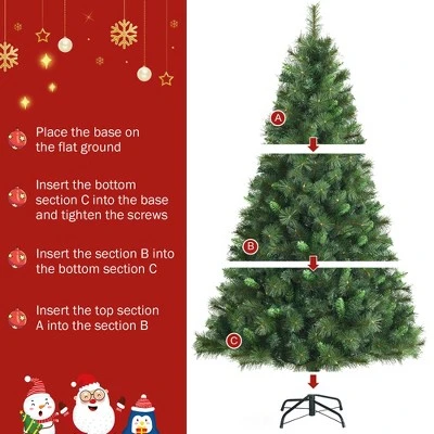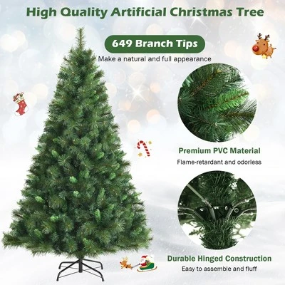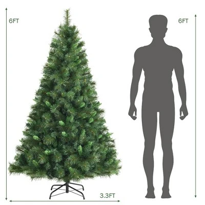 Add more Christmas spirit to your home with our artificial Christmas tree on holidays. This hinged Christmas tree is 6FT tall and 3.3FT in diameter at the bottom, providing you with a perfect full tree decor. All the 649 tips are made of premium PVC material, which is durable and fire retardant for using through your holiday. There is ample space to hang some lovely ornaments to decorate your tree. Featuring a sturdy metal base, the tree can keep stable all the time. The hinged branch system allows quick set-up and fluffing to make your tree a more natural look. When the holiday is over, you can take all the sections apart and fold them back into the box for using in the next year.