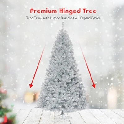 This tree is tall, leafy and fluffy with 1258 branch tips, which will be a great decoration at Christmas. It is crafted of premium PVC material with odorless tinsel film, which is fire-resistant and non-allergenic for a long lifespan. And the metal stand offers high stability and sturdiness to help the tree stay straight in the wind. You can use the Christmas tree whether indoor or outdoor. What’s more, the branches are connected to the trunk by hinges to set up effortlessly in a short time. With unique silver design, it is an eye-catching addition in home, office, shop, etc.