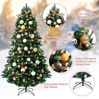 - Full-Bodied Appearance & Life-Like Looking: Standing at 7.5ft, this pre-lit artificial Christmas tree shows an outstanding appearance. Comes with 1242 verdant branch tips, the tree ensures a lux uriant tree shape, looking as charming as a real spruce tree and definitely bringing a natural beauty to your room.