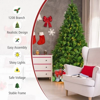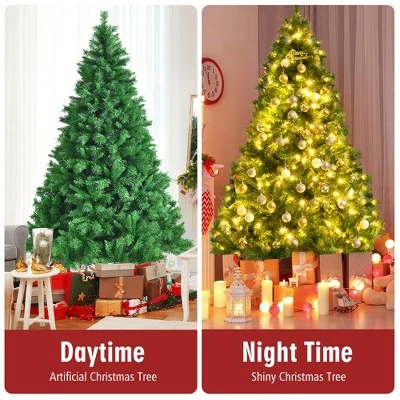 - Realistic Design with Plentiful Leaves: The Christmas tree is built-in 100% new PVC green leaves, to show you a lifelike decoration for long-term indoor use. This 7ft Christmas tree comes with 1208 branch tips that of various leaf shapes showcases a lush look and creates natural gradation, adding unique festive atmosphere in the holiday.