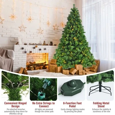 Are your looking for a typical and outstanding decoration for festival celebration? Our pre-lit Christmas tree will be an ideal choice. To keep the balance of romantic vibe and natural scenes, this verdant Christmas tree with warm LED lights showcase excellent lighting show and vibrant natural vividness at home. There are 8 flash modes for you to choose by controlling the foot pedal switch. Thanks to the power-on pole design, the sections need no extra electric strings. And hinged branches will drop automatically, so you need to fluff tree shape for full-bodied appearance. In addition, this 7ft Christmas tree is supported by sturdy metal stand stably and uprightly. In a word, this luxuriant artificial Christmas tree perfectly matches with all occasions for residential and commercial use.