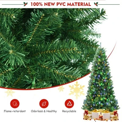 It’s high time to make preparation for the coming Christmas! In order to have a more ex citing festival party, our 8 feet pre-lit Christmas tree can be a nice choice for you. This Christmas tree features 1605 fine crafted branch tips, forming a full-bodied and leafy x mas tree. Made of 100% new PVC, these tips are odorless, nonflammable and recyclable in daily use. So you can hang your preferred ornaments on it as many as possible to make it better. In addition, 600 LED lights with 4 color changing and 9 lighting modes bring a unique feeling to your party. No matter what kinds of atmosphere you want, you can always find the most appropriate lighting modes through the remote controller. The hinged branches simplify installation to save your time and energy.