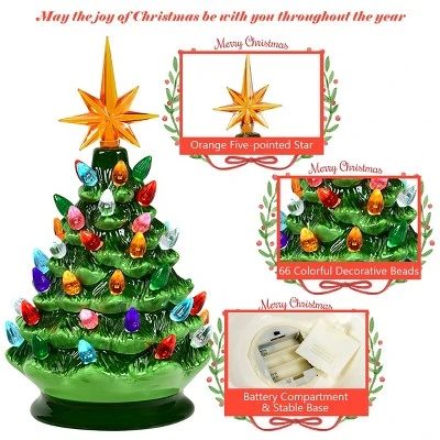 - Lighted Tree Decorative with 44 Beads: The tabletop Christmas tree is pre-installed with lights to bring brilliant shine and bright up your home. Decorated with 44 colorful decorative beads and a 7-pointed star topper, the distinctive ceramic tree will create a festive atmosphere for you.