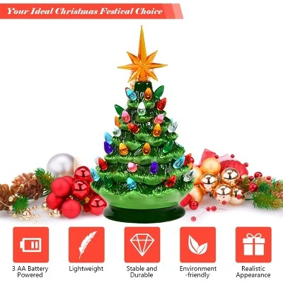 - Battery Powered for Easy Movement: The pre-lit ceramic Christmas tree is battery powered, and its cordless design is largely convenient for movement and storage. Featuring compact size, light weight, and gorgeous lighting effect, the tabletop tree is perfect as a thoughtful gift for friends or colleague.