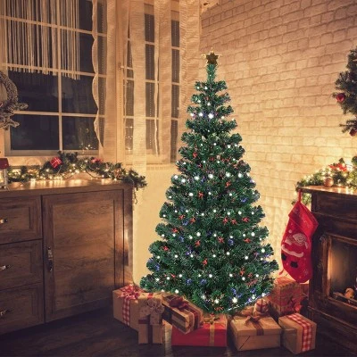 Our new 6Ft Pre-Lit Christmas Tree is an ideal Christmas trimmings. Tree is Decorated with 230 energy saving UL-certified LED lights and multi-colored fiber optics. The LED lights will present changeable white and warm white color with 8 light pattern options by an adjusting button for adding a fantastic festive atmosphere. Our trees are in great quality, making it your best choice. The foliage, made of fade and crush resistant PVC needles, appears fresh-cut. The tips are sculpted to enhance the trees’ lifelike appearance. In addition the staggered branches give the tree a fuller profile. Metal bases to keep the tree planted in an upright position. Add some festive to your home with this Christmas tree.