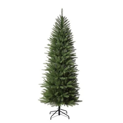 Christmas defined – the thick and full Dumont Fir is the ideal tree for your celebration. This pencil slim 6.5-foot tree with 764 tips is ready for your personal touch with lights and your treasured ornaments. The faux needles are tapered at the tips, just like a real tree but no dropped needles here. It only takes minutes to shape the hinged branches into the perfect tree, and its slim size makes it perfect for small spaces or even flanking a fireplace.