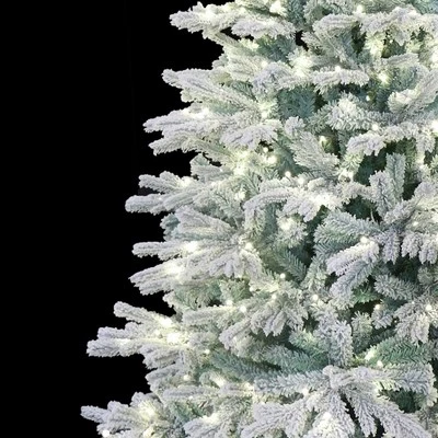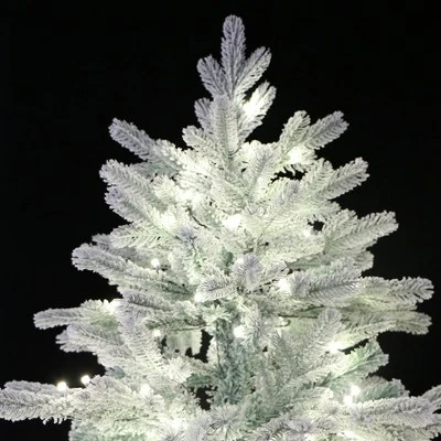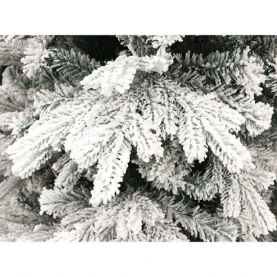 Bring in holiday joy to any apartment or home with the Holiday Stuff Company Snow Angel Blue Spruce Flocked Artificial Tree.Once placed on the included, sturdy metal tree stand, this blue spruce tree will stand at 7 feet tall. The hinged branches will fold outward, making setting up and decorating quick and easy. Designed with a lush, wide silhouette, your family will delight in spending quality time together placing tinsel, ornaments, and other decorations all around this lifelike Christmas tree.With 1004 branch tips, this tree will look magically realistic in any interior space. The PVC technology allows the needle tips to taper and take on different thicknesses. The flocked branches help model snow-covered foliage you’d see on outdoor trees. The tree comes pre-lit with 500 white UL-certified, cool-touch LED lights, with an ON/OFF foot pedal for additional convenience.Eliminate the hassle of traditional trees and greet the holiday season happily with the Holiday Stuff Company Snow Angel Blue Spruce Flocked Artificial Tree.
