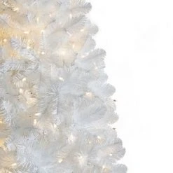 Make your dreams of a white Christmas come to life with the Holiday Stuff Company Sparkling White Artificial Tree.This full-profile tree with soft white needles adds a dazzling touch to any household living area. Once placed on the included, sturdy metal tree stand, this sparkling white tree will stand at 7 feet tall. The hinged branches will fold outward, making setting up and decorating quick and easy. Beckoning with lush white foliage in a full profile, this white Christmas tree features high-quality PVC needles that provide excellent support for your favorite holiday ornaments.With 1,819 branch tips, this tree will look magically realistic in any interior space. The PVC technology allows the needle tips to taper and take on different thicknesses. The flocked branches help model snow-covered foliage you’d see on outdoor trees. The tree comes pre-lit with 500 warm white UL-certified, cool-touch LED lights.Eliminate the hassle of traditional trees and greet the holiday season happily with the Holiday Stuff Company Sparkling White Artificial Tree.