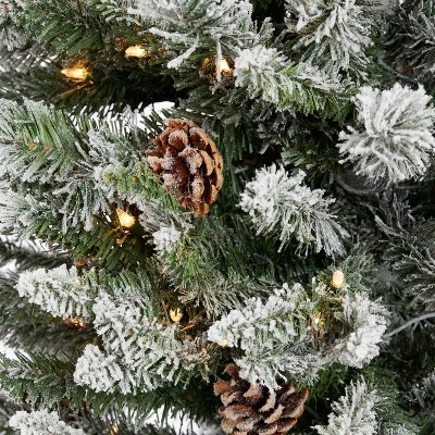 - Bring the holiday cheer into your home with this flocked, pre-lit Christmas tree