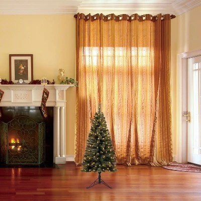 Celebrate the holiday season in style with this space saving Home Heritage Artificial Corner Christmas Tree with LED White Lights and Stand. The slender silhouette of the Home Heritage Artificial Corner Christmas Tree with warm white LED lights makes this masterpiece an ideal accent for foyers, entryways, corners, and small spaces. Sleek and sophisticated, this slim Christmas tree adds an aura of class as it enhances your holiday decor.This tree and features all the same characteristics as a full sized tree but only uses half the space. This comes pre-lit with warm LED lights to provide a cozy glow all winter long. It also includes a corner wire stand for simple setup. Spruce up your living room this Christmas season with the Home Heritage Pre-Lit Corner Christmas Tree.