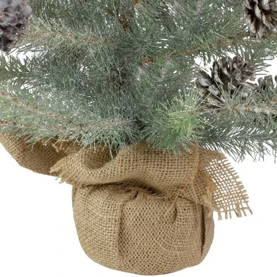 Treat your home to some pizazz this holiday with a lovely tree! Showcasing snowy pine cones coupled with needle pine branches both embellished with glitter, touch your holiday decor with this luxurious vintage artificial pine tree. And if that’s not enough, a weighted burlap base will keep it from falling for when those touchy people can’t keep their hands to themselves.Product Features:UnlitGlittered snowy pine cones and glitter embellished hard needle pine branches Full profile treeRecommended for indoor use onlyNo assembly required – tree comes in 1 pieceComes in a weighted burlap base (the tree can not be removed from burlap base)Dimensions: 2′ high (from the base of the pot to the top of the tree)21″ base diameter (at the widest point)Material(s): PVC/pine cones/metal/burlapNote: Branches are compressed for shipment, and need to be fluffed out upon arrival to look like the photo.