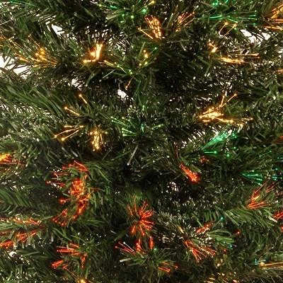 The Fireworks Evergreen fiber optic tree features single bulb operation from a decorative gold column base. Ever-changing multicolor fiber lights shine from this tree creating a dazzling holiday decoration. A great choice for display on a tabletop or in a secondary room.