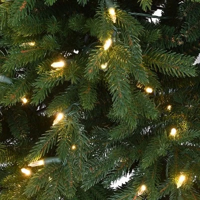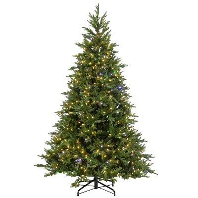 This Huron Spruce tree features the PowerConnect through-the-pole lighting system that eliminates the need for connecting multiple light strings, reducing set up time. Also featured is Feel Real branch tip technology, creating a tree with remarkable realism. This tree is pre-strung with 800 Dual Color lights that change from warm white to multicolor with the touch of a button. The bulbs are low voltage LEDs that are energy-efficient and long lasting. Included is a foot pedal switch to control 10 different light colors and actions. Hinged branch construction makes assembly quick and easy.