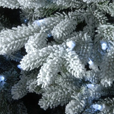 This Snowy Hamilton Spruce tree features Feel Real branch tip technology, creating a tree with remarkable realism. These crush-resistant branch tips are molded from real tree branches for an authentic living tree appearance. This tree is pre-strung with 750 cool white LED lights that when reflected off the snow sprinkled branches, give the tree a light blue hue. Also included is a switch to operate eight different light functions. Hinged construction and included metal tree stand add to ease of assembly.