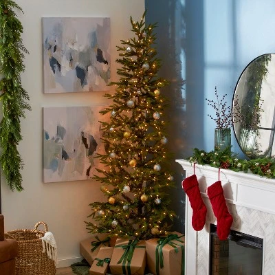 No sap. No needles piling up on your floor. No random wildlife living in your tree. Just turn on your favorite holiday music playlist and get to decorating the National Tree Company Feel Real Montgomery 7-Foot Corner Holiday Tree.Skip the messy setup and watering schedule that comes with a real tree. This artificial green corner tree features realistic hinged branches, pre-strung lights, and a built-in base that make it easier for you to get this Christmas tree up and ready to adorn with your favorite ornaments. With hundreds of individually crafted branch tips featuring ‘Feel Real’ technology, this corner tree will fool your guests into thinking you cut it down yourself. Don’t fret when stringing lights as this festive fir is pre-lit with 300 warm white lights and has a total number of 1,131 tips. Its sturdy metal base will keep the tree from tipping over from unexpected bumps, likely to happen if kids and pets are around. Don’t risk frostbite this year going out into the wilderness to find the perfect tree. National Tree Company’s Feel Real Feel Real Montgomery 7-Foot Corner Holiday Tree is going to set your home off with a wintery holiday touch.