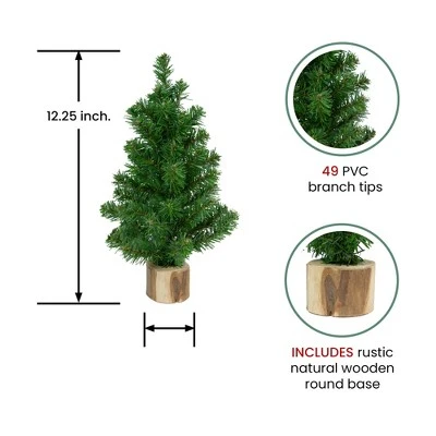 holiday magic makes the world a beautiful place. Create your own holiday village with this adorable mini Alpine holiday tree. A perfect replica of a full-size tree, it’s sure to bring your village to life. The round wooden base makes placement on any flat surface a breeze. Add mini ornaments to create a unique decoration. Product Features:Unlit49 tipsSlim profile treeRecommended for indoor use onlyDimensions: 12.25″ high (from the base of the wood stand to the top of the tree) 6″ diameter (at the widest point)Wood base: 2″ highMaterial(s): PVC/woodNote: Branches are compressed for shipment, and need to be fluffed out upon arrival to look like the photo.