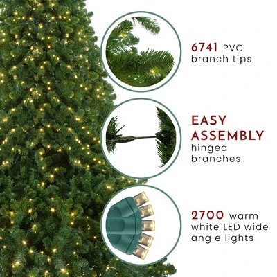 Gorgeous and lush, the Olympia pine adds the feeling of the rich forest to the indoors. With its full profile, medium green foliage, and warm lighting, it’s just like having a real tree. Complete your decor with our entire Olympia Pine collection. Product Features:Pre-lit with 2700 warm white lightsBulb size: concave wide angleBulb type: LED6741 branch tips2″ wide tips36″ lead cord 6-piece easy assembly (including stand)Comes with a FREE green metal tree stand on castersCasters lock for safetyAdditional Product Features:LED lights use 90% less energy Durable non-glass bulbsCool to the touchFull profile treeHinged branch constructionUL certified and approved for indoor or outdoor useNon-replaceable bulbs come in single mold constructionUnlike most lights, this type of construction prevents moisture from seeping in and causing corrosionWire gauge: 22Dimensions: 14′ high (from the base of the stand to the top of the tree)100″ base diameter (at the widest point)Material(s): PVC/metal/plastic bulbs/wireNote: Branches are compressed for shipment, and need to be fluffed out upon arrival to look like the photo.