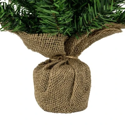 This beautiful tree features foliage with a mix of dark green and light green pine needles to create that realistic look without all of the hassles! This gorgeous traditional style tree stands in its own decorated burlap base to relieve you of the hassle of adding a tree skirt! This mini tree is perfect for decorating small spaces such as dorm rooms or apartments or to add pizzaz to your tabletops. Product Features:Unlit45 branch tips1.75″ wide branch tipsMedium profile treeRecommended for indoor useComes in a weighted burlap base No assembly required – tree comes in 1 pieceDimensions: 18″ high (from the bottom of the base to the top of the tree)9.5″ base diameter (at the widest point)Material(s): PVC/wire/burlapNote: Branches are compressed for shipment, and need to be fluffed out upon arrival to look like the photo.