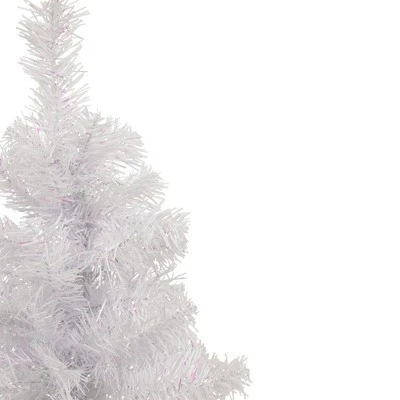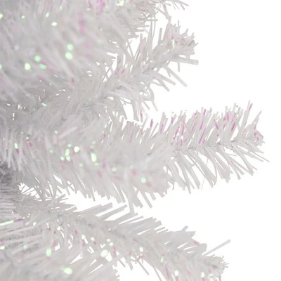 With its immaculate color and generous profile, the Rockport White Pine holiday tree glistens with wintry beauty. It is a designer-inspired alternative to a traditional green tree with its dazzling white pine needles. The branches contain a mix of matte white and clear iridescent needles that create texture and add depth to the tree. The iridescent needles beautifully reflect the light. This tree is perfect for a quick and easy setup and ideal for corners or tabletops. Product features:Unlit64 tips2.5″ wide branch tipsMedium profile tree2-piece easy assembly (including stand)For indoor use onlyIncludes a white plastic tree stand Dimensions: 2′ high (from the base of the stand to the top of the tree)17″ base diameter (at the widest point)Material(s): PVC/plasticNote: Branches are compressed for shipment, and need to be fluffed out upon arrival to look like the photo.
