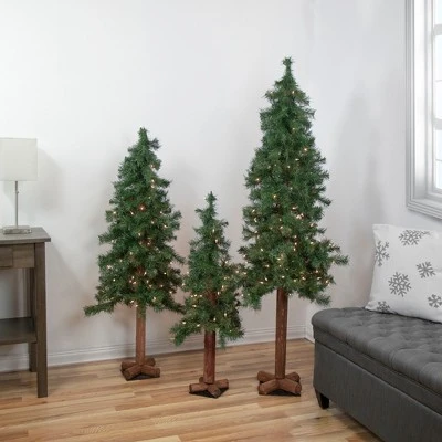 - Set Of 3 Pre-Lit Woodland Alpine Christmas Trees